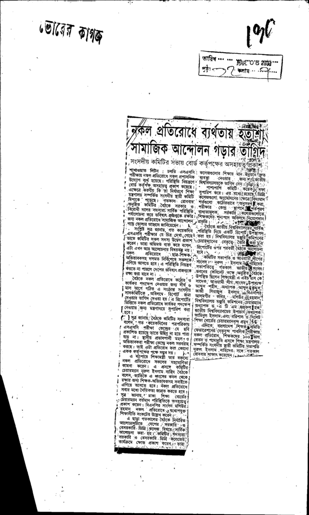 নকল প্রতিরোধ ব্যর্থতায় হতাশা সামাজিক আন্দোলন গড়ার তাগিদ Published on Newspaper দৈনিক ভোরের কাগজ Category Public Examination Public Examination Others Download