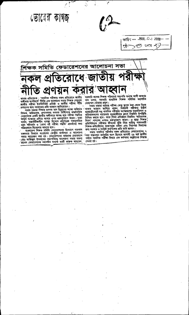 নকল প্রতিরোধে জাতীয় পরীক্ষা নীতি প্রণয়ন করার আহব্বান