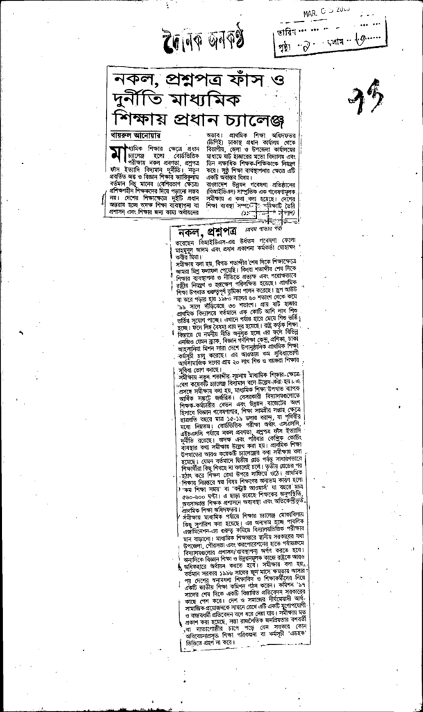 নকল,প্রশ্নপত্র ফাঁস ও দুর্নীতি মাধ্যমিক শিক্ষায় প্রধান চ্যালেঞ্জ Published on Newspaper দৈনিক জনকণ্ঠ Category Public Examination Public Examination Others Download