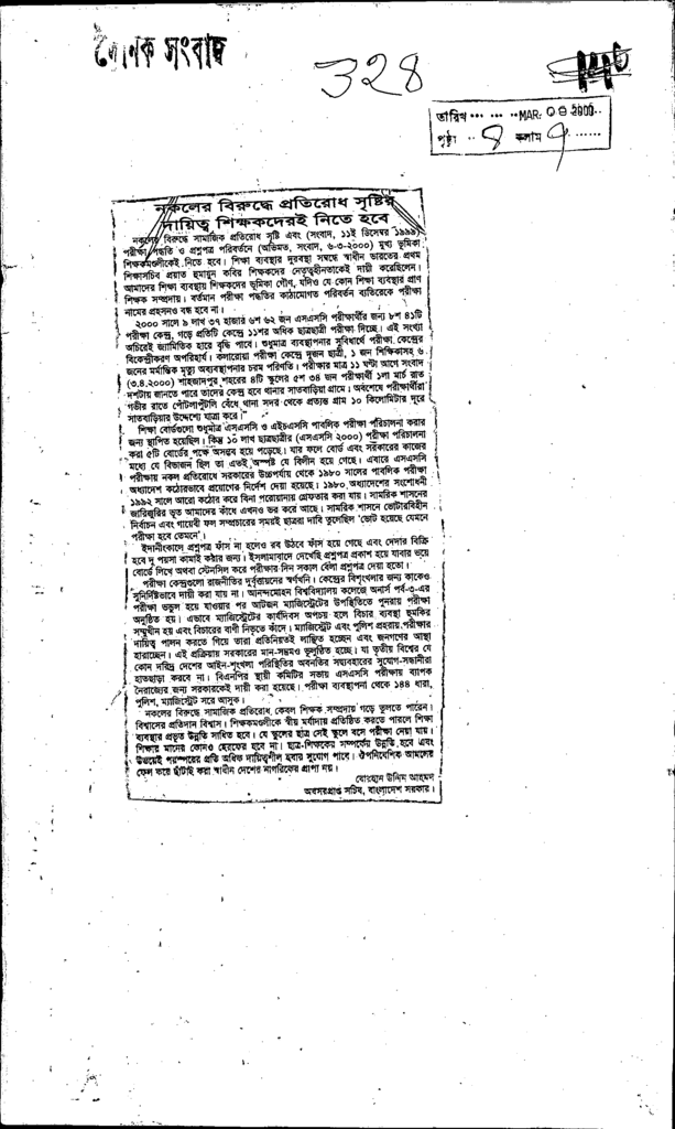নকলের বিরুদ্ধে প্রতিরোধ সৃষ্টির দায়িত্ব শিক্ষকদেরই নিতে হবে