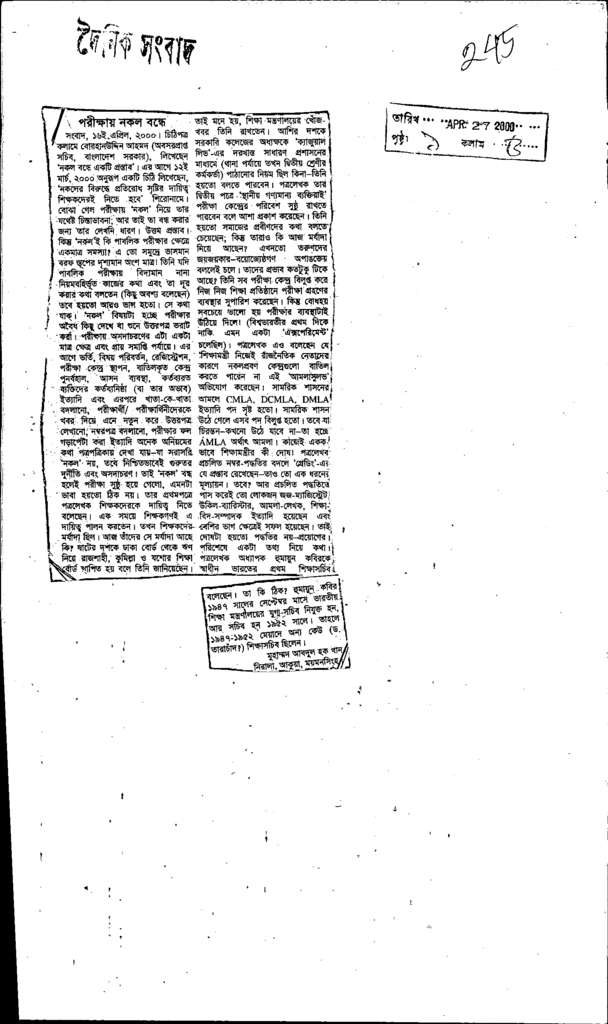 পরীক্ষার নকল বন্ধে Published on Newspaper দৈনিক সংবাদ Category Public Examination Public Examination Others Download