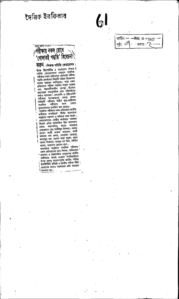 পরীক্ষার নকল রোধে খোলাবই পদ্ধতি বিবেচনা Published on Newspaper দৈনিক ইনকিলাব Category Public Examination Public Examination Others Download