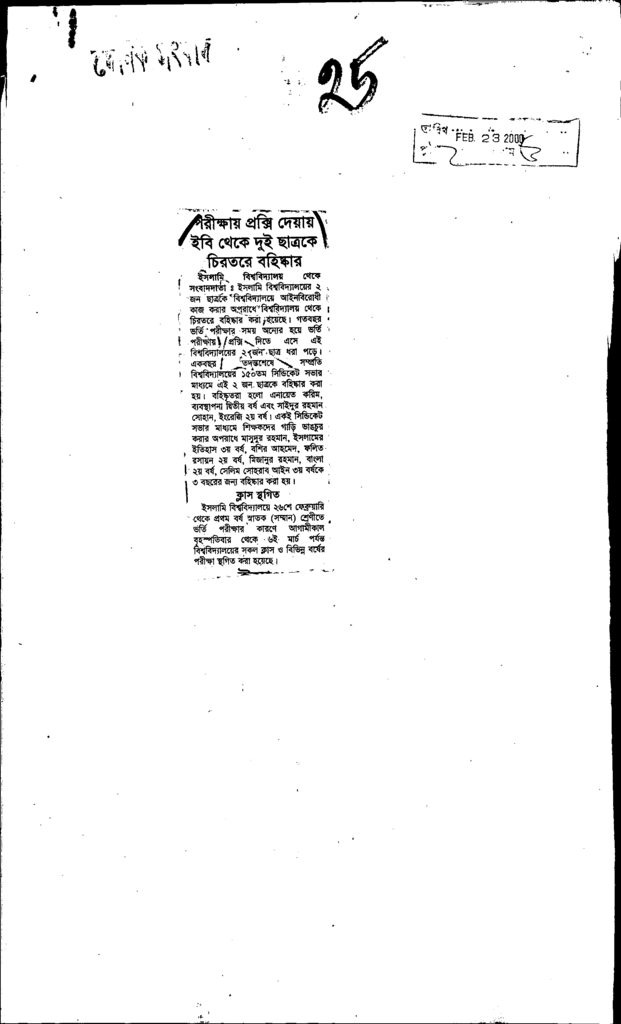 পরীক্ষায় প্রক্মি দেয়ায় ইবি থেকে দুই ছাত্রকে চিরতরে বহিস্কার Published on Newspaper দৈনিক সংবাদ Category Public Examination Public Examination Others Download