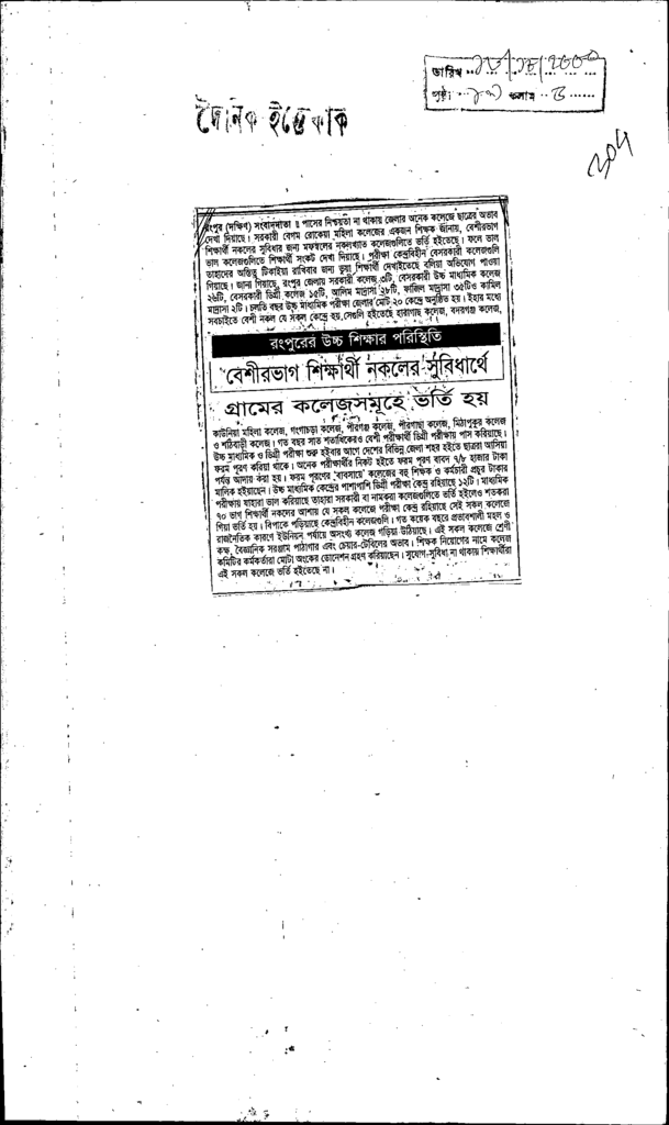 বেশীরভাগ শিক্ষার্থী নকলের সুবিধার্থে গ্রামের কলেজসমুহে ভর্তিহয় Published on Newspaper দৈনিক ইত্তেফাক Category Public Examination Public Examination Others Download