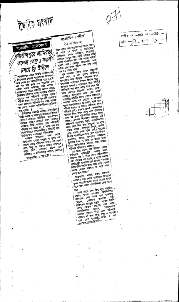 শাহাজাদপুরে জমিরতা কলেজ কেন্দ্র: নকল চলছে ফ্রি স্টাইলে Published on Newspaper দৈনিক সংবাদ Category Public Examination Public Examination Others Download