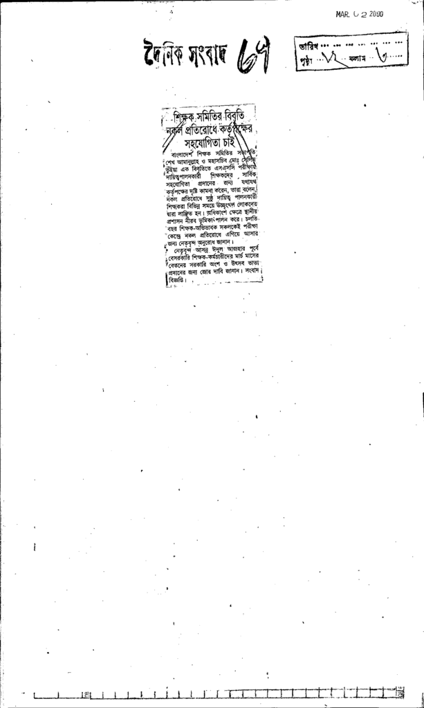 শিক্ষক সমিতির বিরতি নকল প্রতিরোধ কর্তৃপক্ষের সহযোগিতা চাই Published on Newspaper দৈনিক সংবাদ Category Public Examination Public Examination Others Download