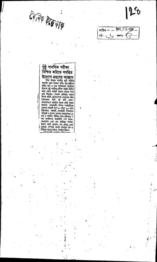 সুষ্টু পাবলিক পরীক্ষা নিশ্চিত করিতে সমন্বিত উদ্যোগ গ্রহণের আহব্বান Published on Newspaper দৈনিক ইত্তেফাক Category Public Examination Public Examination Others Download