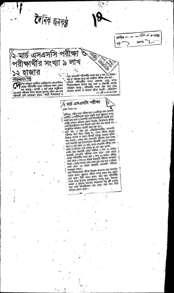 ২ মার্চ এসএসসি পরীক্ষা পরীক্ষার্থীর সংখ্যা ৯ লাখ ১২ হাজার