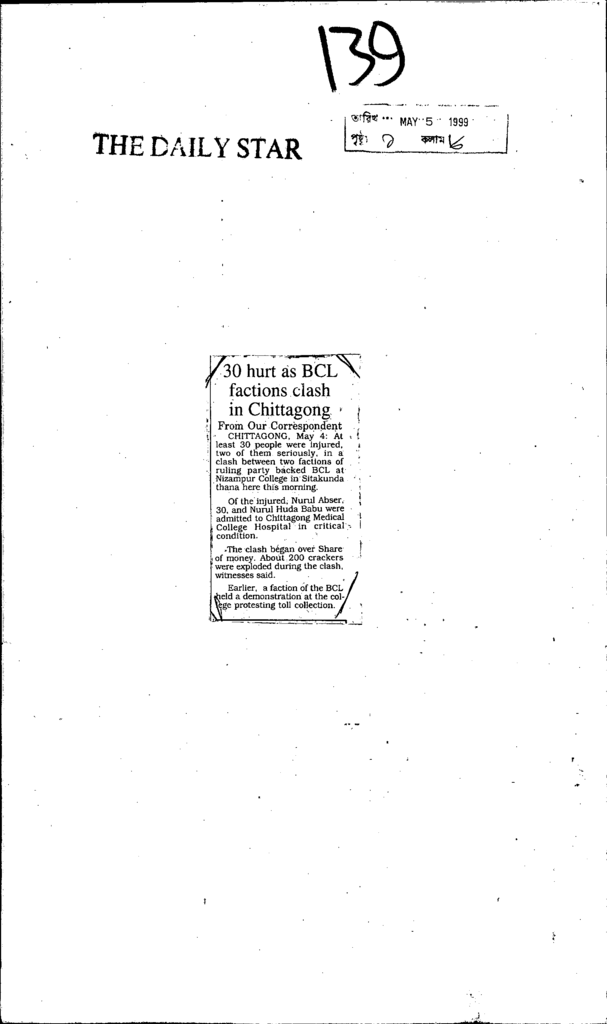 30hurt as bcl factions clash in chittagong Published on Newspaper The Daily Star Category Student Politics Download