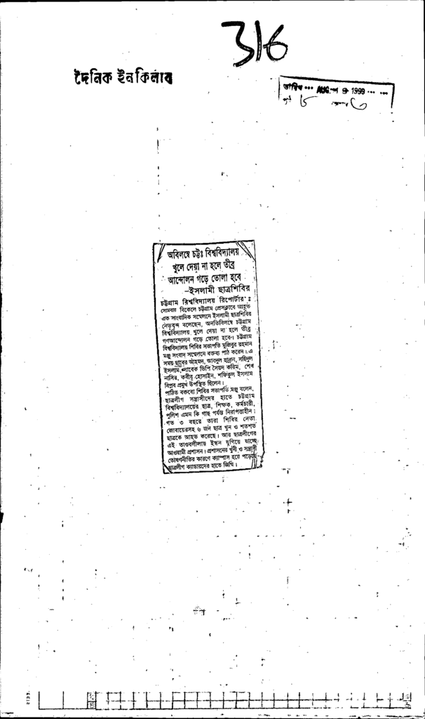 অবিলম্বে চট্ট: বিশ্ববিদ্যালয় খুলে দেয়া না হলে তীব্র আন্দোলন গড়ে তোলা হবে ইসলামী ছাত্রশিবির Published on Newspaper দৈনিক ইনকিলাব Category Student Politics Download