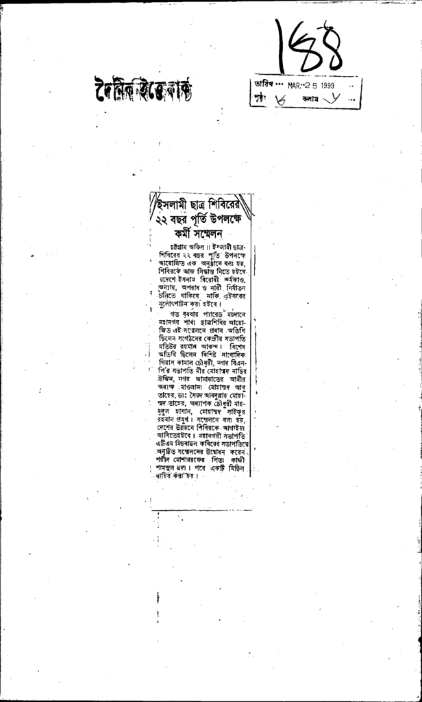 ইসলামী ছাত্র শিবিরের ২২ বছর পূর্তি উপলক্ষে কর্মী কম্মেলন Published on Newspaper দৈনিক ইত্তেফাক Category Student Politics Download