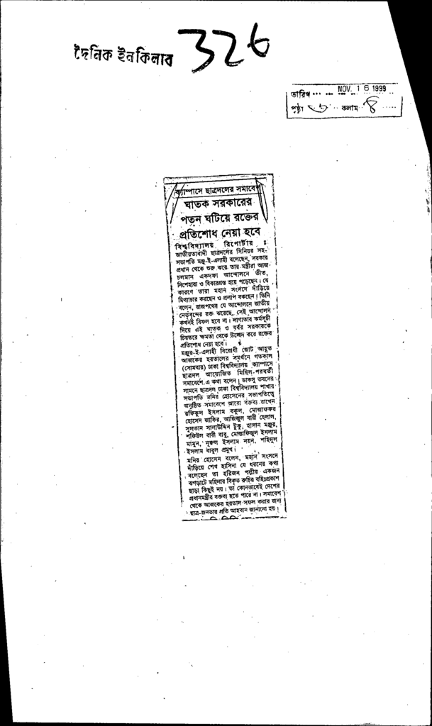 ক্যাম্পাসে ছাত্রদলের সমাবেশে ঘাতক সরকারের পতন ঘটিয়ে রক্তের প্রতিশোধ নেয়া হবে Published on Newspaper দৈনিক ইনকিলাব Category Student Politics Download