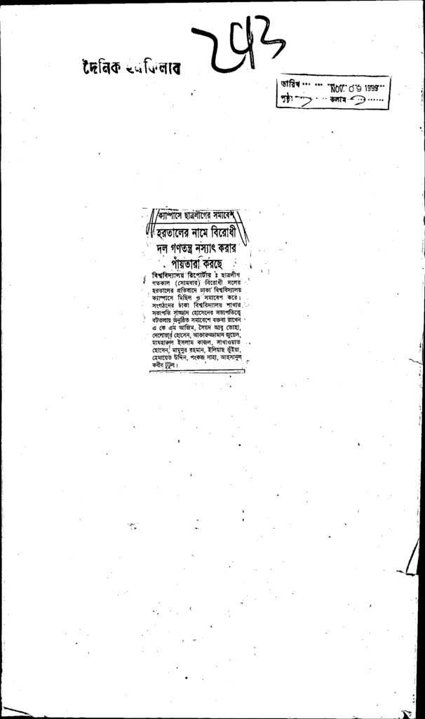 ক্যাম্পাসে ছাত্রলীগের সমাবেশ হরতালের নামে বিরোধী দল গনতন্ত্র নস্রাৎ করার Published on Newspaper দৈনিক ইনকিলাব Category Campus Terrorism Download