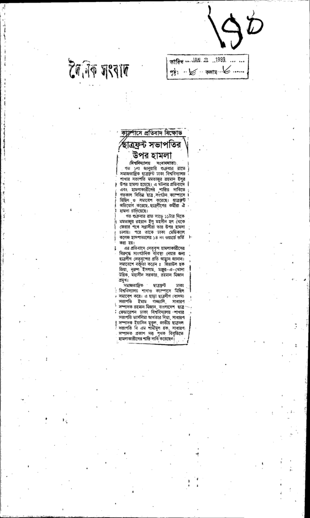 ক্যাম্পাসে প্রতিবাদ বিক্ষোভ ছাত্রফ্রন্ট ষবাপতির উপর হামলা Published on Newspaper দৈনিক সংবাদ Category Student Politics Download