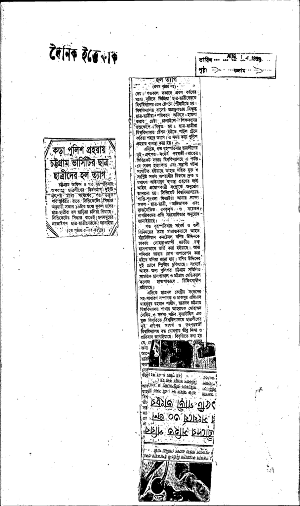 কড়া পুলিশ প্রহরায় চট্রগ্রাম ভার্সিটির ছাত্র ছাতীদের হল ত্যাগ Published on Newspaper দৈনিক ইত্তেফাক Category Student Politics Download