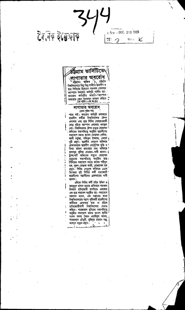 চট্রগ্রাম ভার্সিটিতে লাগাতার অবরোধ Published on Newspaper দৈনিক ইত্তেফাক Category Student Politics Download