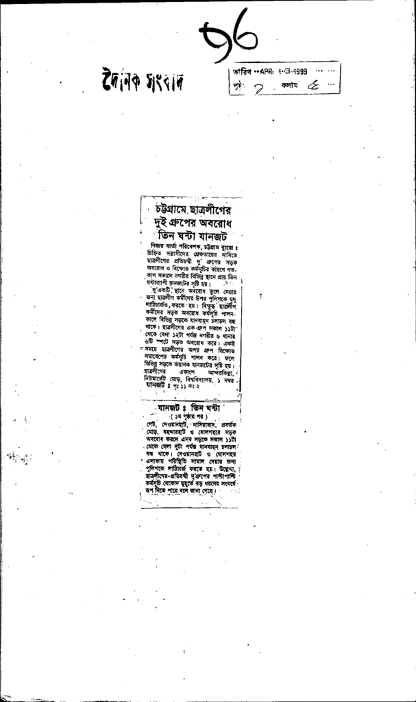চট্রগ্রামে ছাত্রলীগের দুই গ্রুপের অবরোধ তিন ঘন্টা যানজট Published on Newspaper দৈনিক সংবাদ Category Student Politics Download