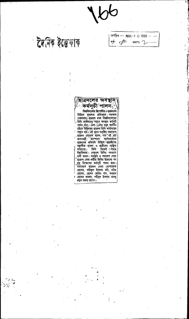ছাত্রদলের অবস্থান কর্মসূচী পালন Published on Newspaper দৈনিক ইত্তেফাক Category Student Politics Download