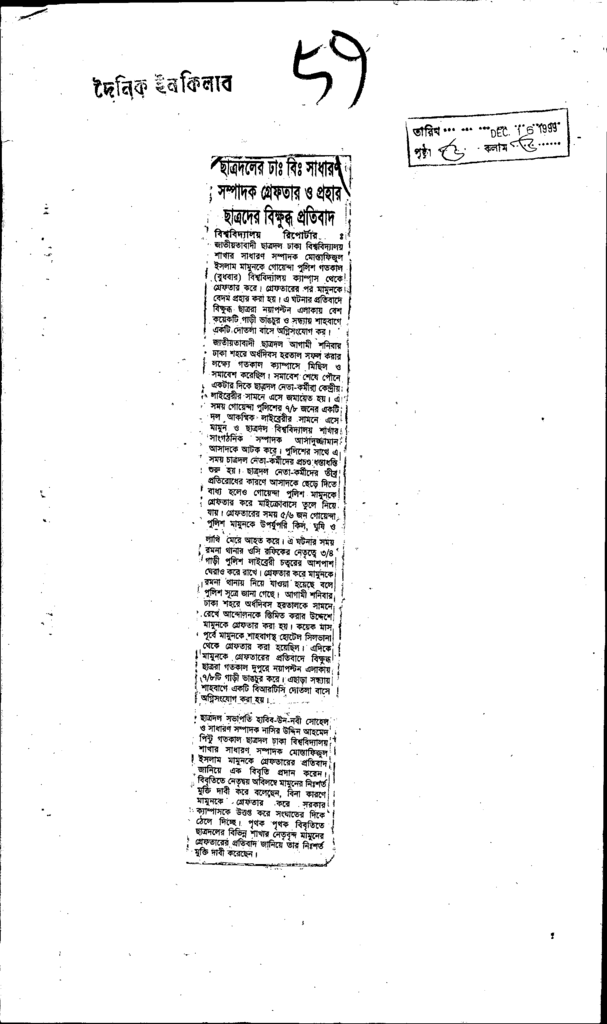 ছাত্রদলের ঢা: বি: সাধারণ সমপআদক গ্রেফতার ও প্রহার চাতদ্রদের বিক্ষুব্ধ প্রতিবাদ Published on Newspaper দৈনিক ইনকিলাব Category Student Politics Download