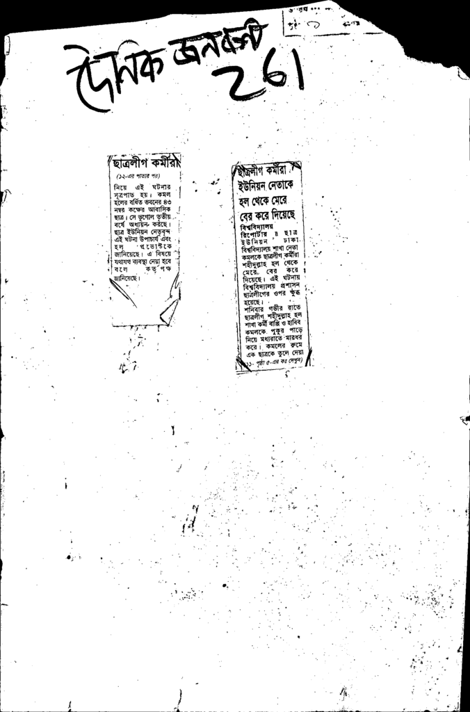 ছাত্রলীগ কমীরা ই্উনিয়ন নেতাকে হল থেকে মেরে বের কেরে দিয়েছে Published on Newspaper দৈনিক জনকণ্ঠ Category Student Politics Download