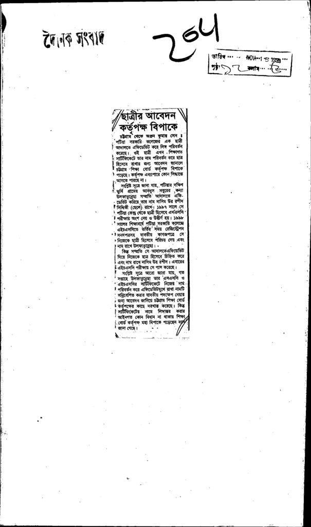 ছাত্রীর আবেদন কর্তৃপক্ষ বিপাকে