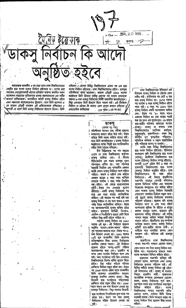 ডাকসু নির্বাচন কি আদৌ অনুষ্ঠিত হইবে Published on Newspaper দৈনিক ইত্তেফাক Category Student Politics Download