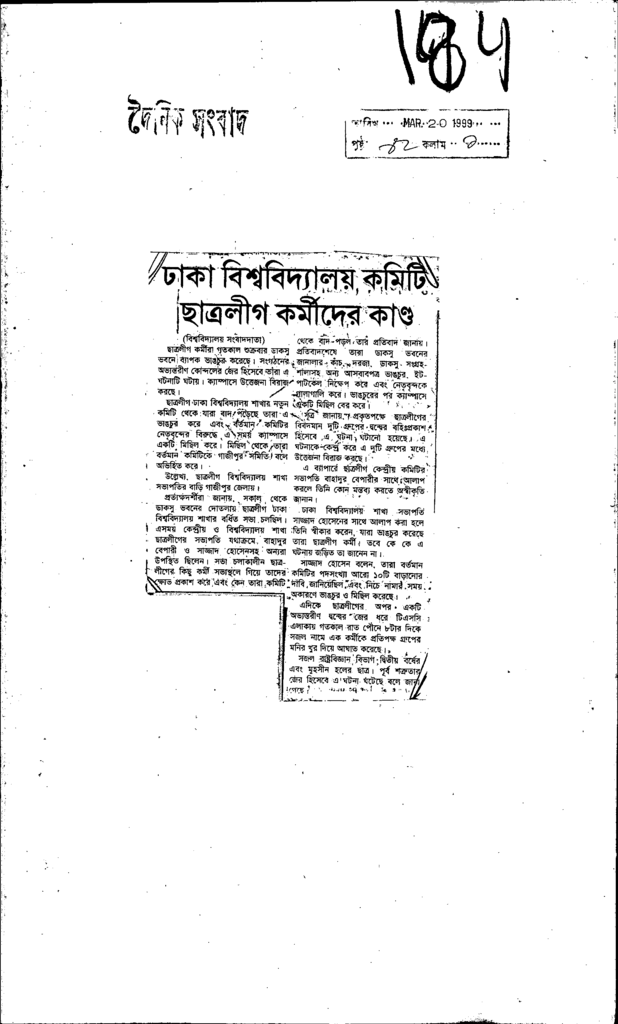 ঢাকা বিশ্ববিদ্যালয় কমিটি ছাত্রলীগ কর্মীদের কান্ড Published on Newspaper দৈনিক সংবাদ Category Student Politics Download