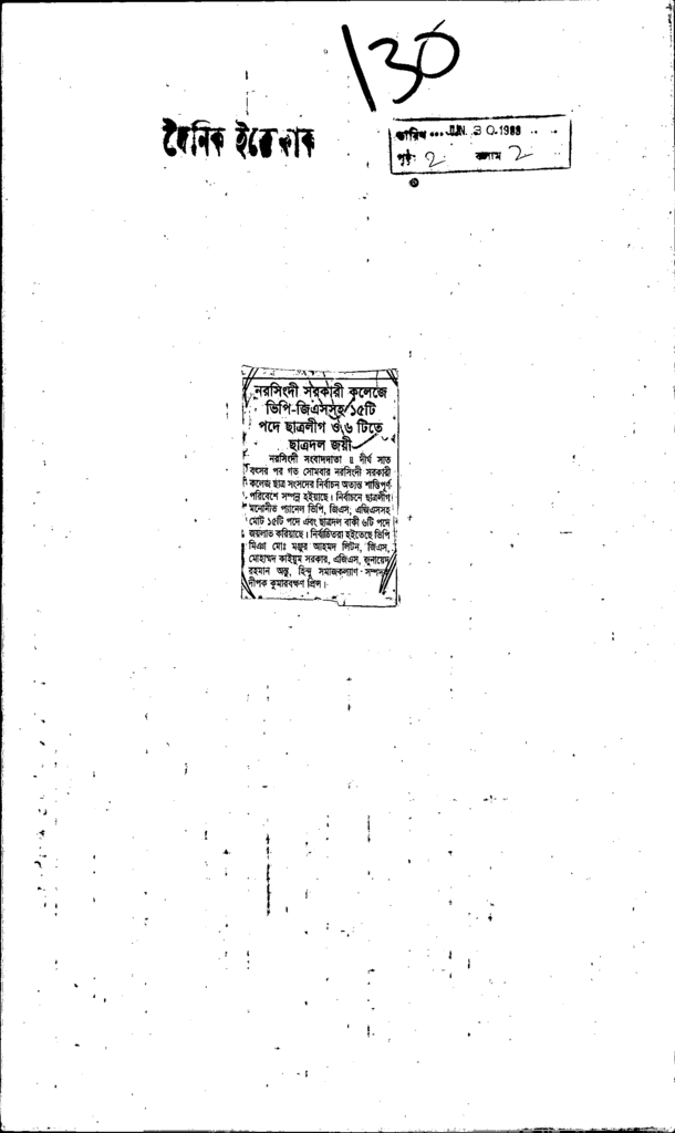 নরসিংদী সরকারী কলেজে ভিপি পিএসসহ ১৫টি পদে ছাত্রলীগ ও ৬টি টিতে ছাত্রদল জয়ী Published on Newspaper দৈনিক ইত্তেফাক Category Student Politics Download