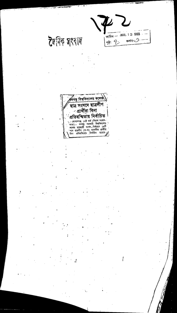 বঙ্গবন্ধু বিশ্ববিদ্যালয কলেজ ছাত্র সংসদে ছাত্রলীগ প্রার্থীরা বিনা প্রতিদ্বন্দিব্বতায় নির্বাচিত Published on Newspaper দৈনিক সংবাদ Category Student Politics Download