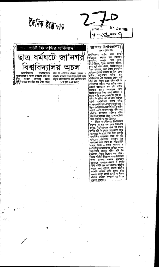 ভর্তি বৃদ্ধির প্রতিবাদ ছাত্র ধর্মঘটে জা নগর বিশ্ববিদ্যালয় অচল Published on Newspaper দৈনিক ইত্তেফাক Category Student Politics Download