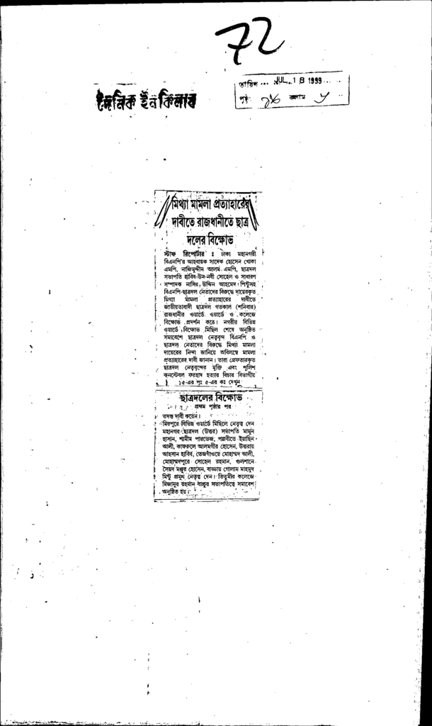 মিথ্যা মামলা প্রত্যাহারের দাবীতে রাজধানীতে ছা্ত্র দলের বিক্ষোভ Published on Newspaper দৈনিক ইনকিলাব Category Student Politics Download