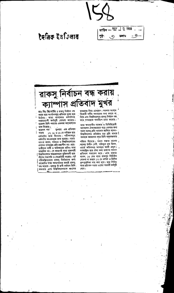 রাকসু নির্বাচন বন্ধ করায় ক্যাম্পাস প্রতিবাদ মুখর Published on Newspaper দৈনিক ইনকিলাব Category Student Politics Download