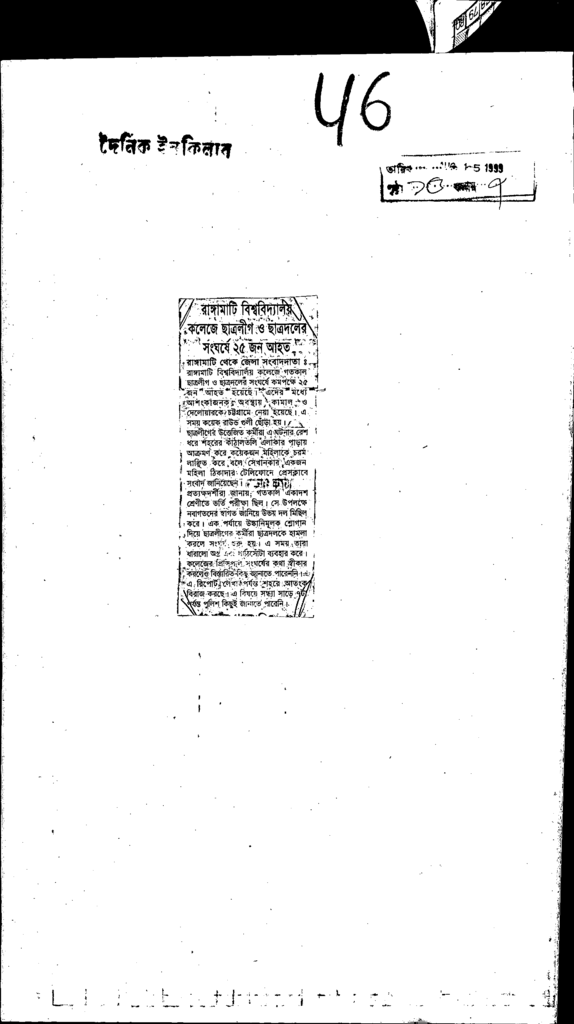 রাঙ্গামাটি বিশ্ববিদ্যালয় কলেজে ছা্ত্রলীগ ও ছাত্রদলের সংঘর্ষ ২৫জন আহত Published on Newspaper দৈনিক ইনকিলাব Category Student Politics Download