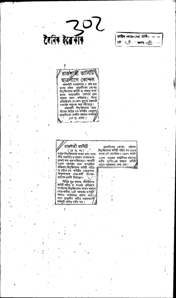 রাজশাহী ভার্সিটি ছাত্রলীগে কোন্দল Published on Newspaper দৈনিক ইত্তেফাক Category Student Politics Download