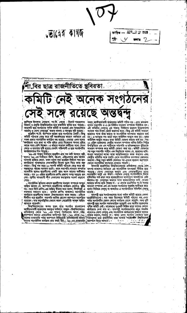 শা. বির ছাত্র রাজনীতিতে স্থবিরতা কমিটি নেই অনেক সংগঠনের সেই সঙ্গে রয়েছে অন্তর্দ্বন্দ্ব Published on Newspaper দৈনিক ভোরের কাগজ Category Student Politics Download