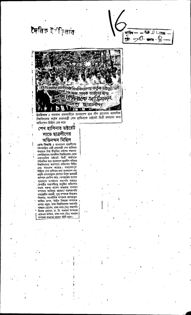 শেখ হাসিনার ডক্টরেট লাভে ছাত্রলীগের অবিন্দন মিছিল