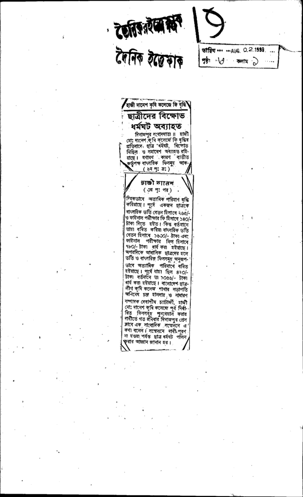 হাজী দানেশ কৃষি কলেজে ফি বৃদ্ধি ছাত্রীদের বিক্ষোভ ধর্মঘট অব্যাহত Published on Newspaper দৈনিক ইত্তেফাক Category Student Politics Download