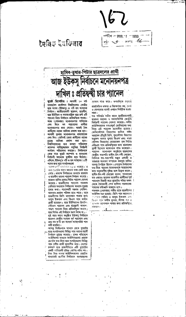 হাসিব তুষার পিটার ছাত্রদলের প্রার্থী আজ ইউকসু নির্বাচনে মনোনয়নপত্র দাখিলঃ প্রতিদ্বন্দ্বী চার প্যানেল Published on Newspaper দৈনিক ইনকিলাব Category Student Politics Download