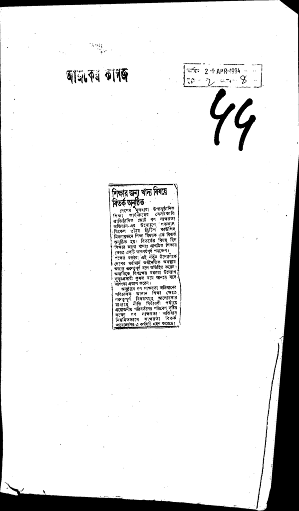 শিক্ষার জন্য খাদ্য বিষয়ে বিতর্ক অনুষ্ঠিত Published on Newspaper দৈনিক আজকের কাগজ Category General Education Download