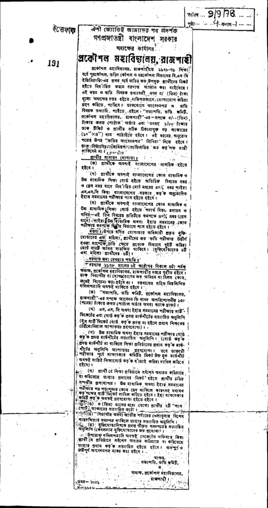 প্রকৌশল মহাবিদ্যালয় রাজশাহী Published on Newspaper দৈনিক ইত্তেফাক Category General Education Download