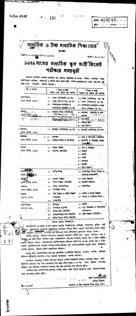 মাধ্যমিক ও উচ্চ মাধ্যমিক শিক্ষাবোর্ড Published on Newspaper দৈনিক বাংলা Category General Education Download