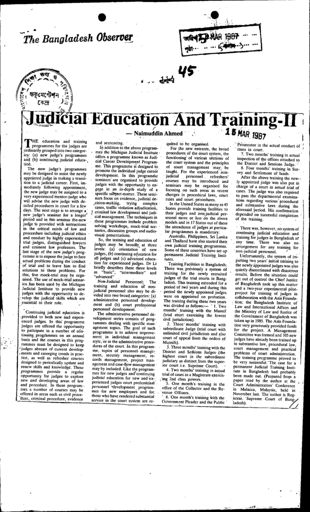Judicial education and training -ii Published on Newspaper The Bangladesh Observer Category Admission / Seat Problem Admission/Seat Problem Download