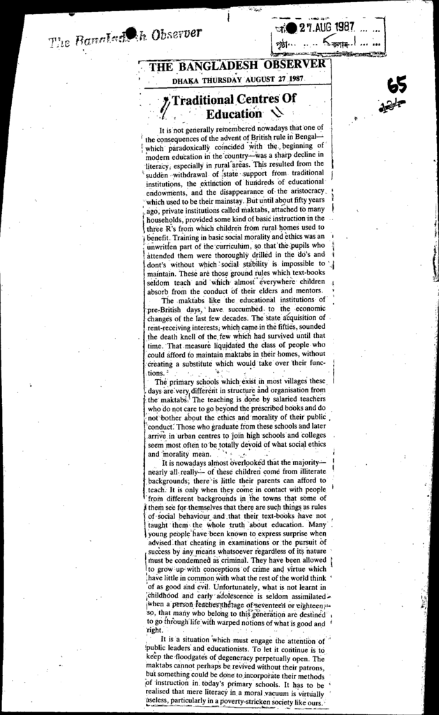Traditional centres of education Published on Newspaper The Bangladesh Observer Category Admission / Seat Problem Admission/Seat Problem Download