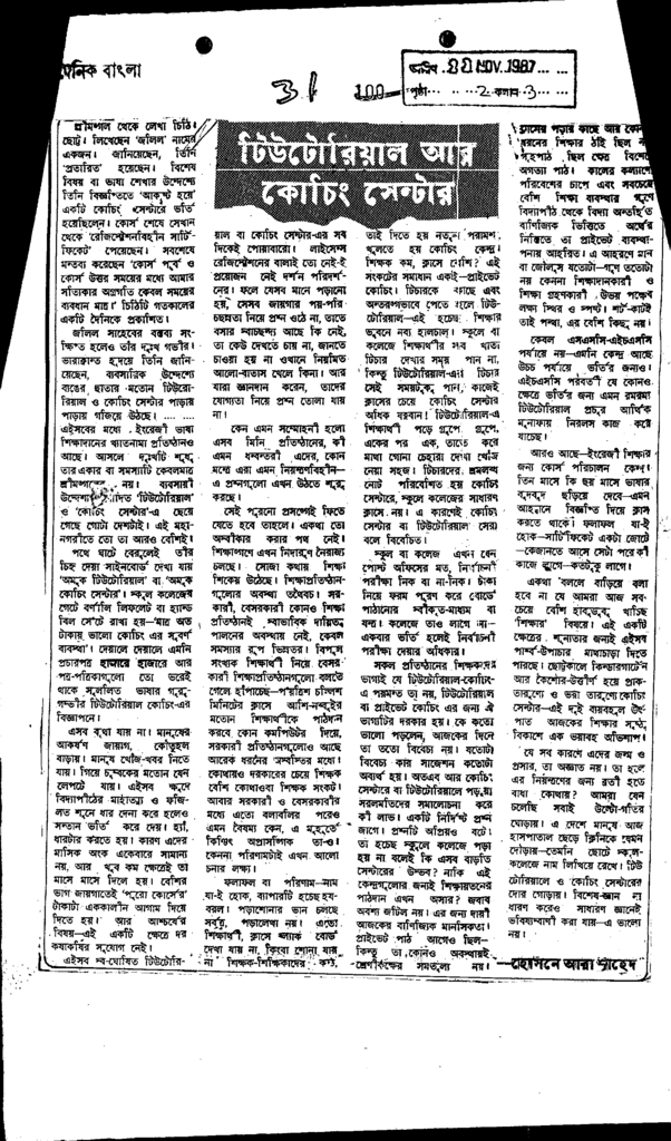 টিউটোরিয়াল আর কোচিং সেন্টার Published on Newspaper দৈনিক বাংলা Category Admission / Seat Problem Admission/Seat Problem Download
