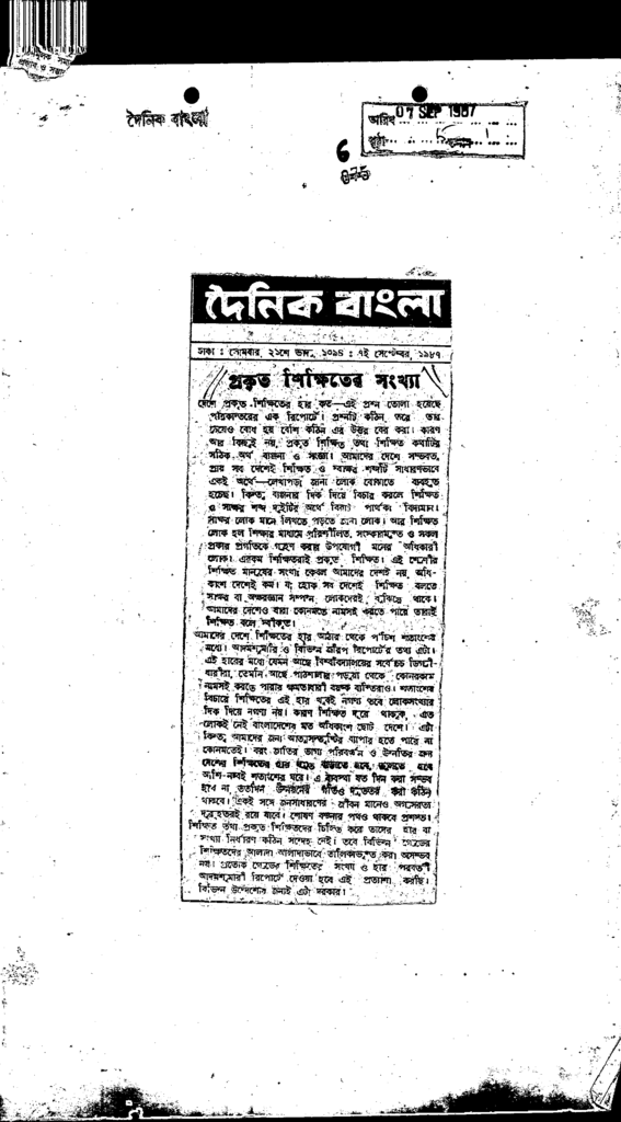প্রকৃত শিক্ষিতের সংখ্যা Published on Newspaper দৈনিক বাংলা Category Admission / Seat Problem Admission/Seat Problem Download