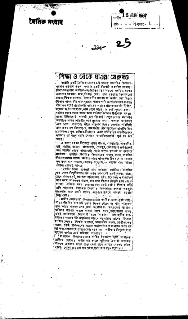শিক্ষা ও বেকে যাওয়া মেরুদন্ড Published on Newspaper দৈনিক সংবাদ Category Admission / Seat Problem Admission/Seat Problem Download
