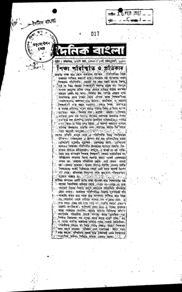 শিক্ষা পরিস্থিতি ও প্রতিকার