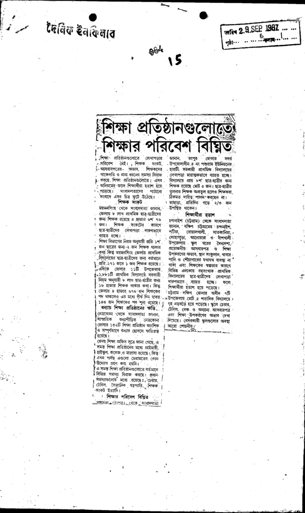 শিক্ষা প্রতিষ্ঠানগুলোতে শিক্ষার পরিবেশ বিঘ্নিত Published on Newspaper দৈনিক ইনকিলাব Category Admission / Seat Problem Admission/Seat Problem Download