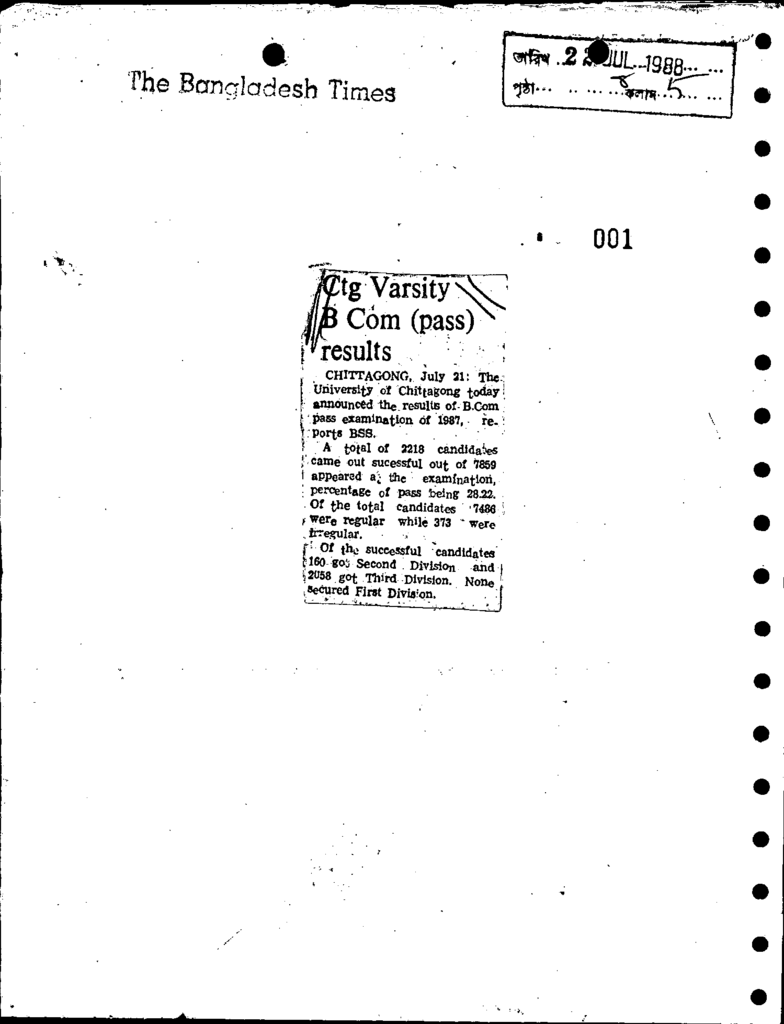 Ctg varsity b com (pass) resutls Published on Newspaper The Bangladesh Times Category Admission / Seat Problem Admission/Seat Problem Download