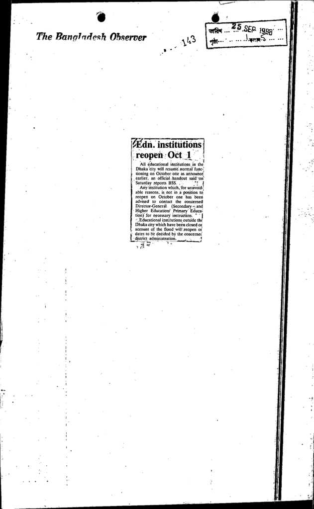 Edn. institutions reopen oct 1 Published on Newspaper The Bangladesh Observer Category Admission / Seat Problem Admission/Seat Problem Download